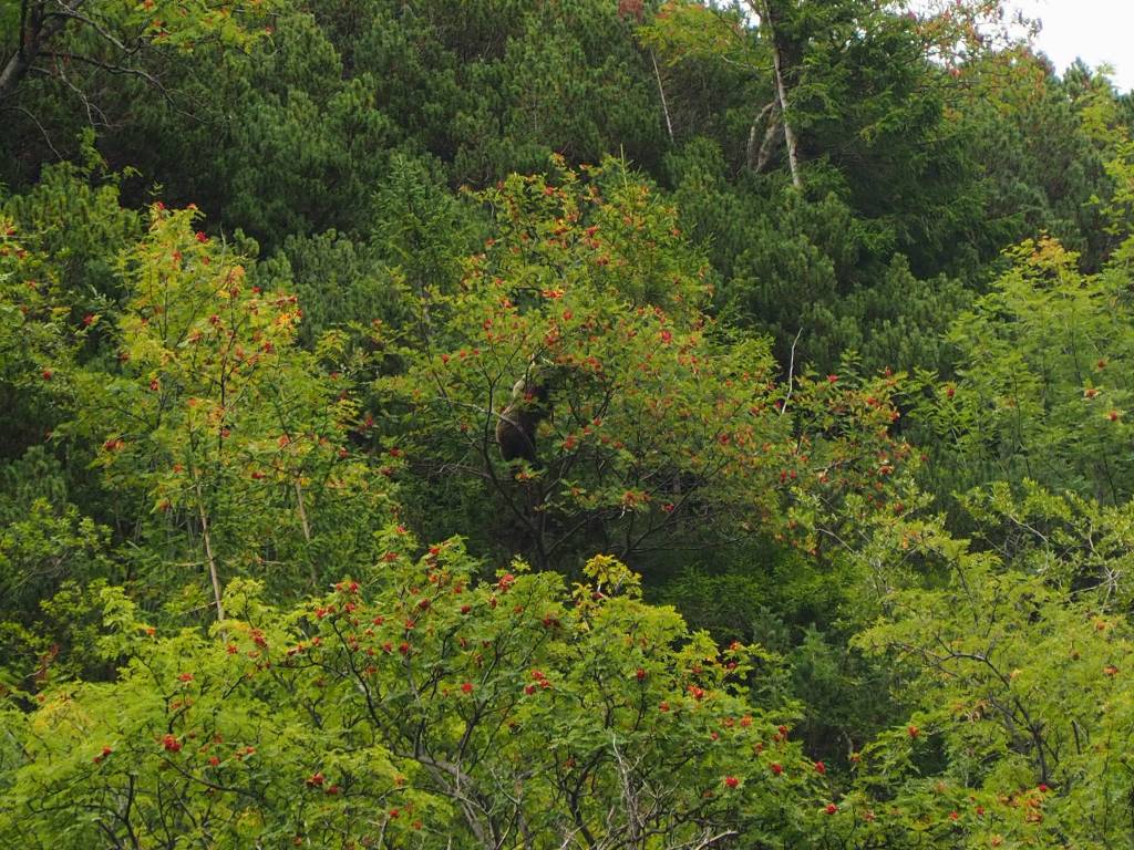 Two bears started eating red berries atop a tree like natural-born climbers. Every motion was quick; the branches bowed under their weight, and they eagerly ate the delectable berries. We were able to photograph one of the bears, thereby capturing a flawless moment of their inherent climbing prowess. Wild nature in its most genuine form was shown in an intriguing exhibition.